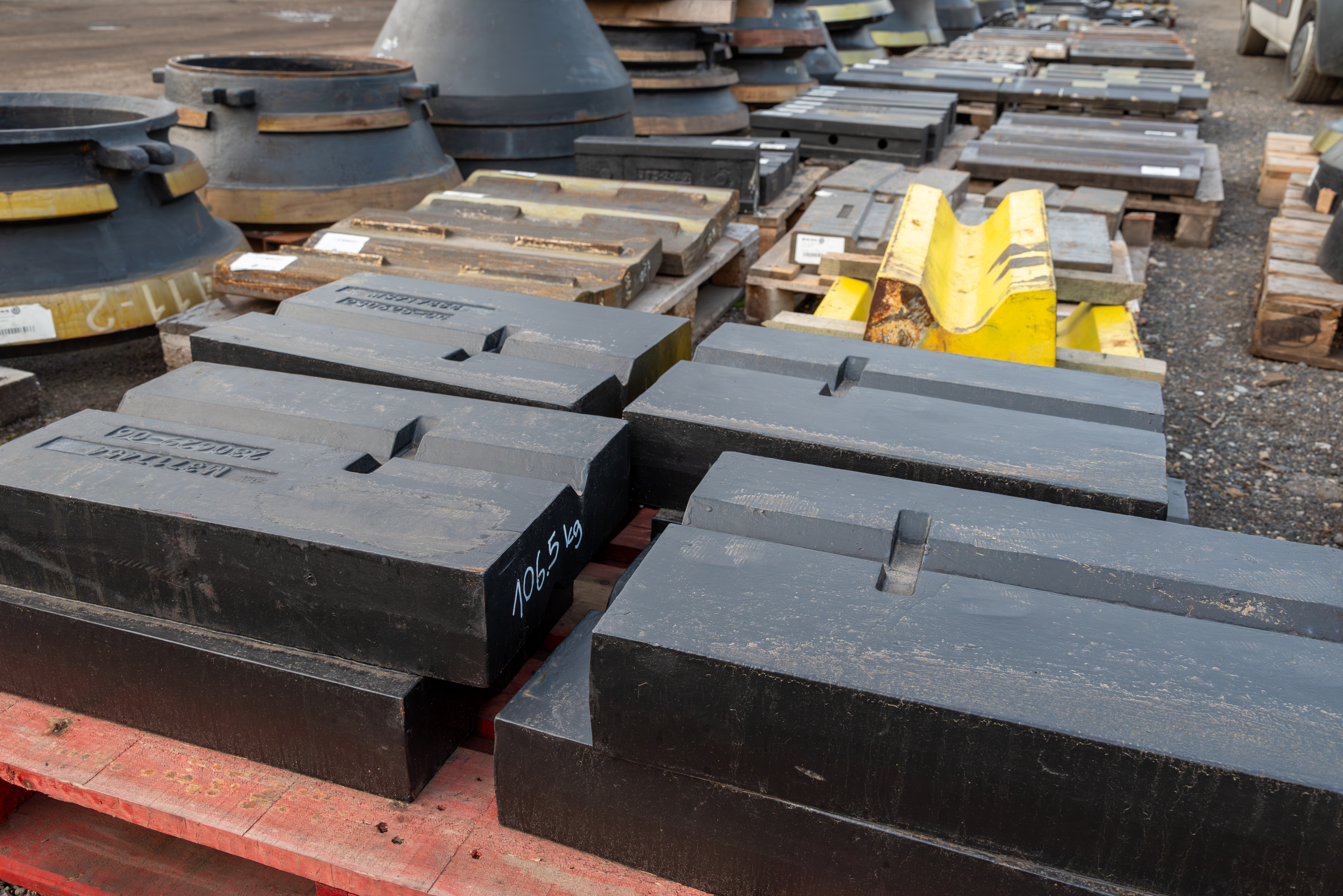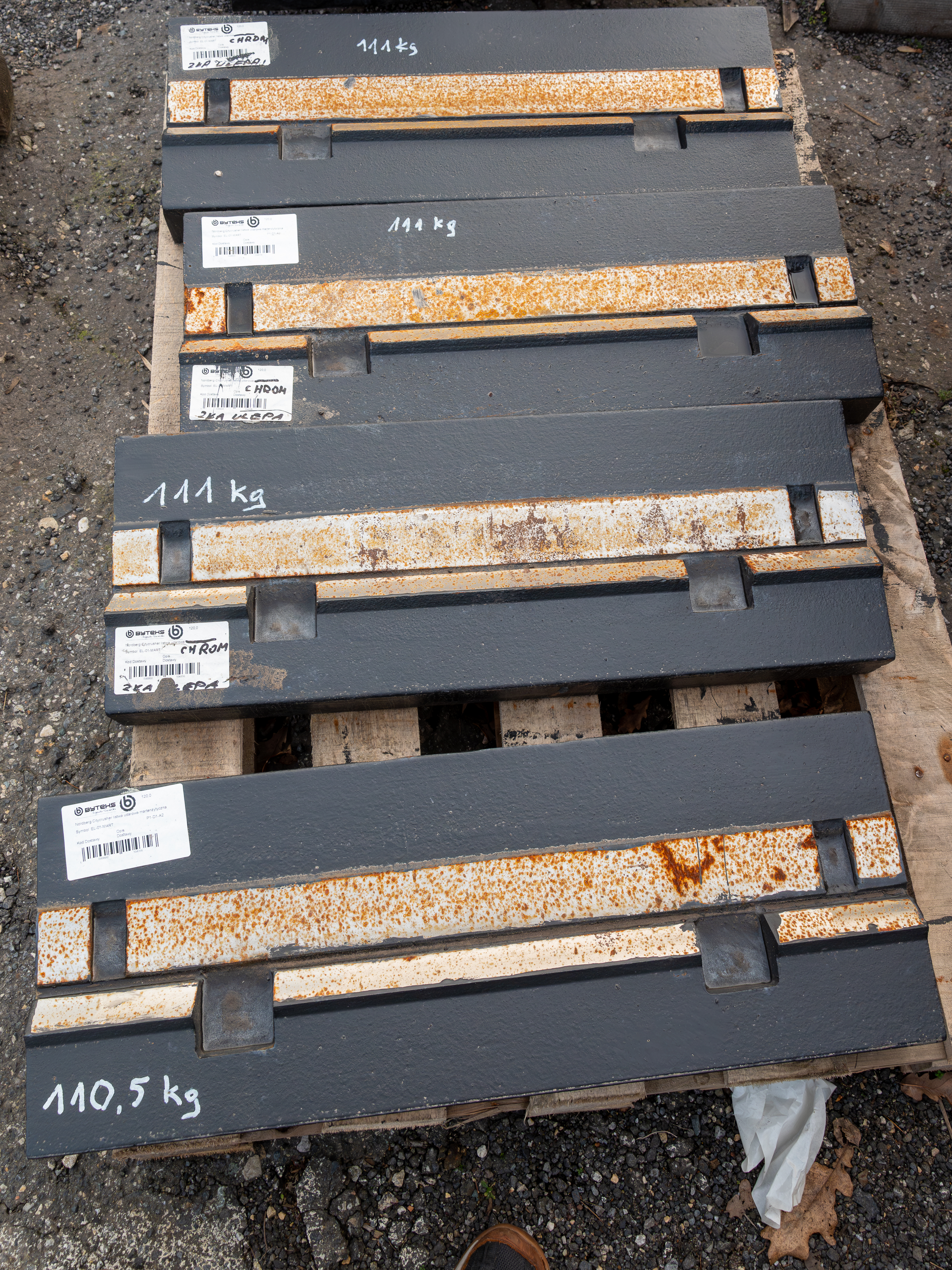 Posiadamy w ofercie listwy udarowe (młotki) do kruszarek udarowych ze stopów manganowych, wysokochromowych lub chromowych z ceramiką oraz martenzytycznych lub martenzytycznych z ceramiką. Zapewniamy dostawę części do kruszarek wszystkich popularnych marek min.: Hazemag, SBM, Tesab, PF, Rubblemaster, Pegson i innych.